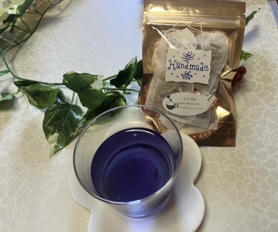 お茶会で楽しく会話しながらプログラムをこなしていくスタイル、カラフルなハーブティー初回は、 その日のカラーの色で飲んでいただきます。💕