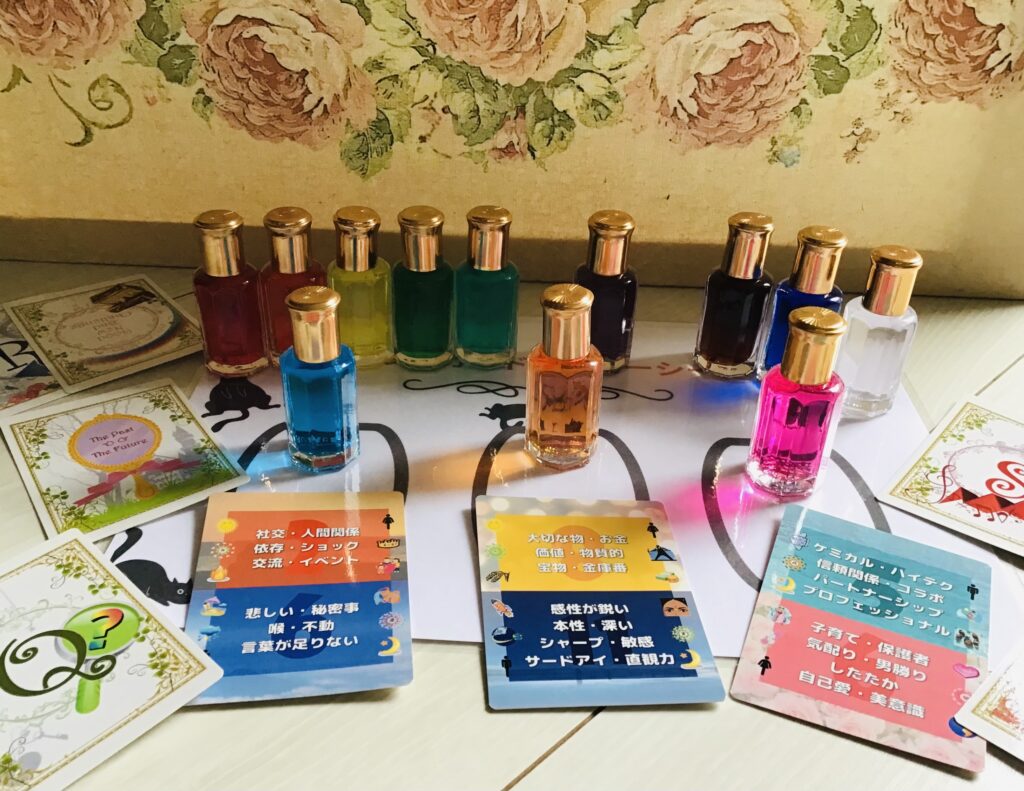 あなたの運気カラーより、今をどう有意義にしていくのか?もっと豊かな毎日を送るには、運気あげるのに必要なことはをカラーアドバイスいたします。22本の心理アロマより心理アロマセラピーをいたします。そこには思いもよらない裏心理等を知ることもあります。足りない心を埋めるためのあなたに必要なアロマを下のミラクルカラーストラップにお入れします。カラーとアロマによりあなたにミラクルを起す事も可能です。自分の力で奇跡を起こしてください。