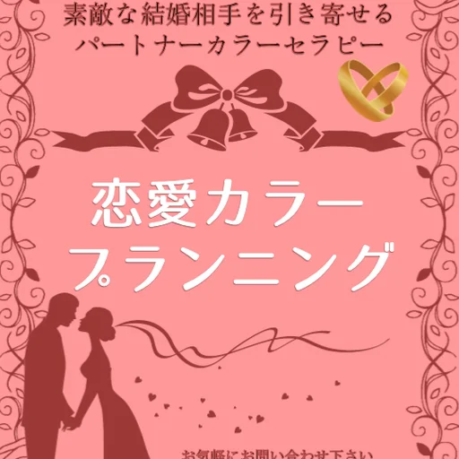 自分認識をカラーでするカウンセリング&ソウルカラーを知るセラピーを受けられてください。その後の講座受講までコースがございます。 1回目は自分認識カウンセリングとソウルカラーセッション 2回目は6時間のカラー講座を学ばれて頂く流れとなります。3回目はメイキングする場合はアロマセッションがあります。恋愛カラープランニングセッションの場合もあります。 費用は44000円となります。 その後婚活パティーや出会いの場で、魂の引き寄せをするカラーも分かっていますので、 ときめいた方に生年月日を聞くだけです。 スマホにカラー計算機で計算も可能です。相手もしっかりと自分色を生きているのか?習われた講座でこの人を色でメイキングできるか?そして相手をカラーで見極めて、カラーコミュニケーションをとってください。フローが必要な場合 相手に対しての悩みなどある場合は別料金ではありますが、 ご相談は承っています。 1セッション6600円 前世の関わりをカウンセリングも致しております。